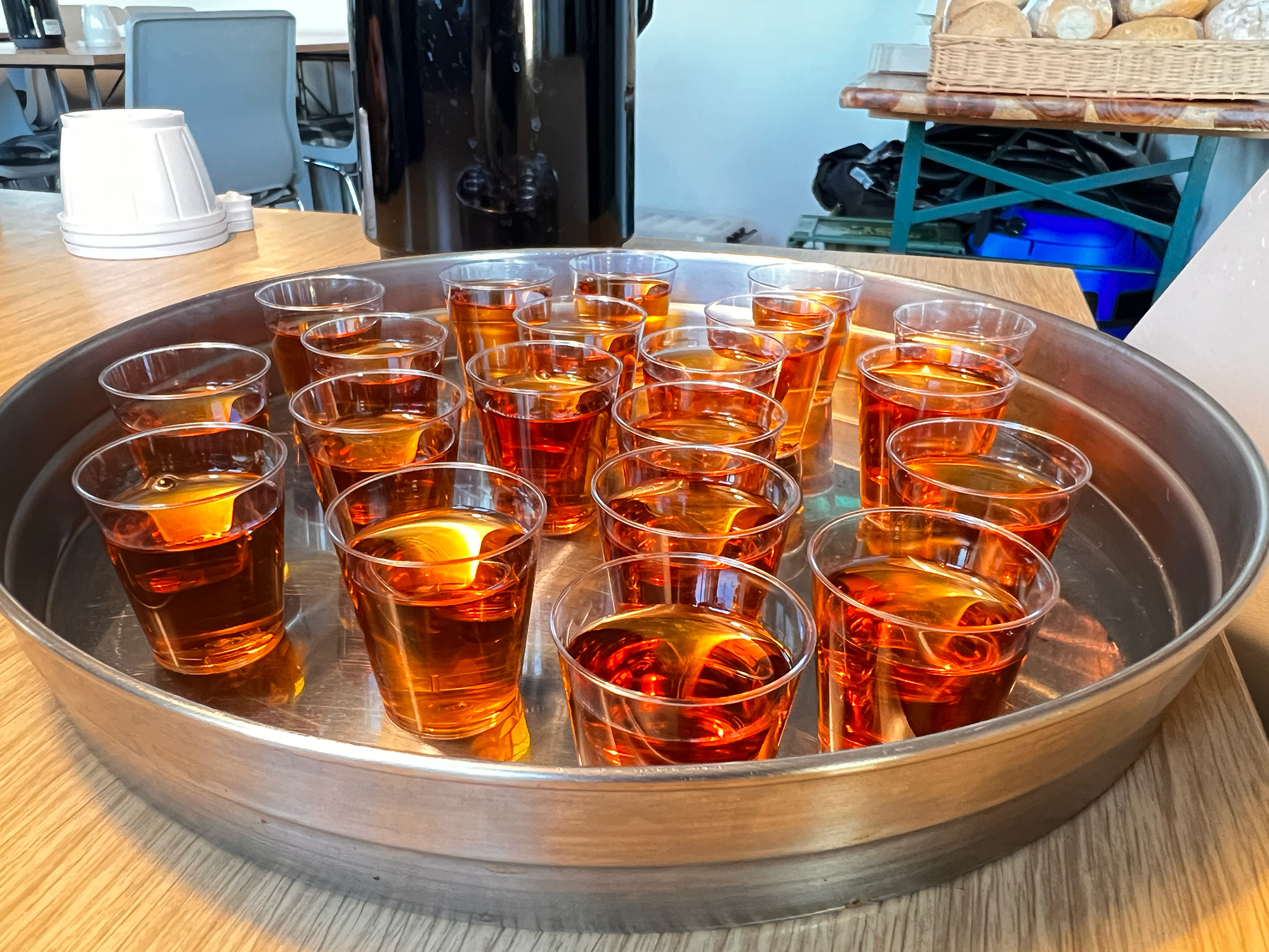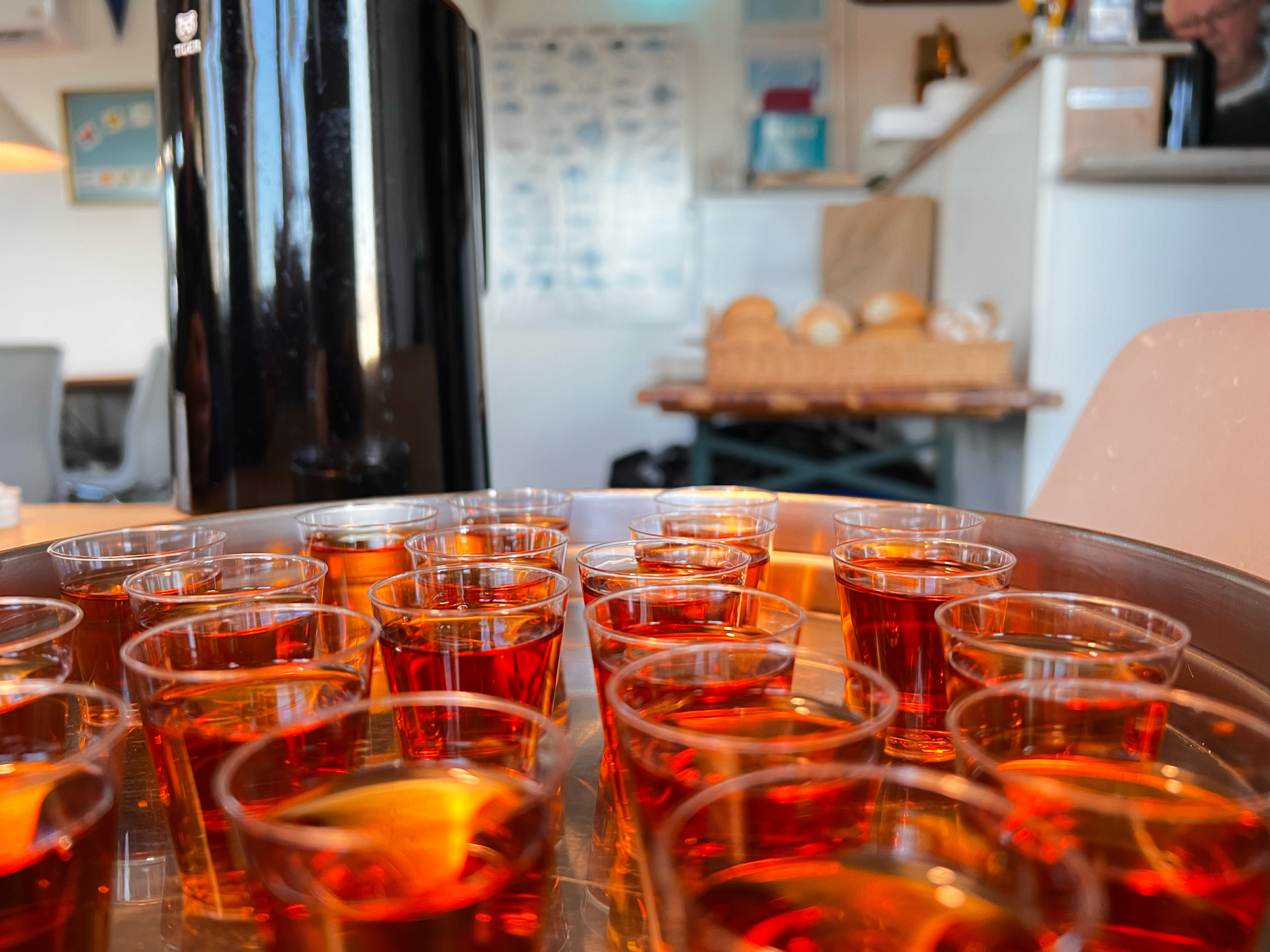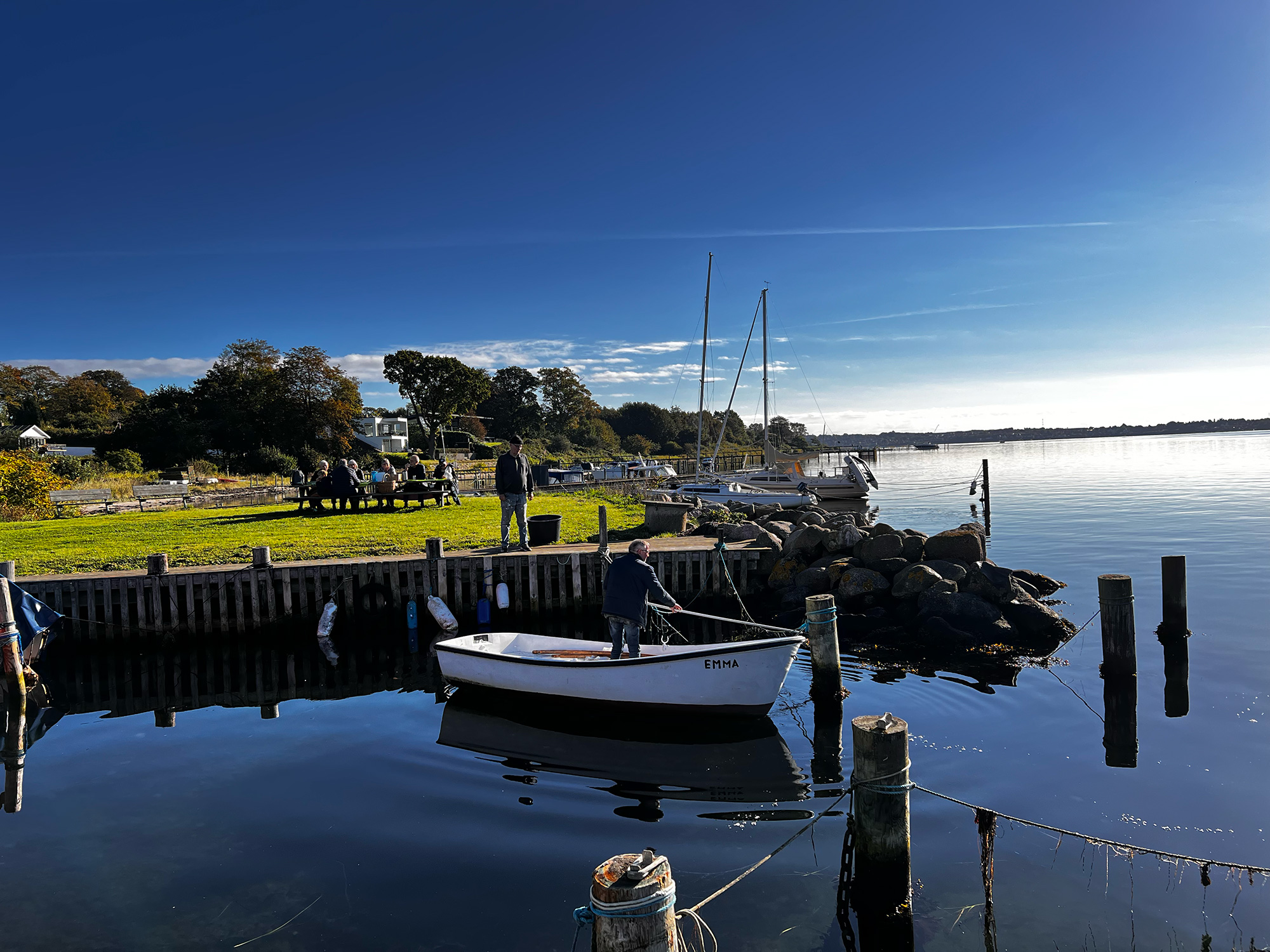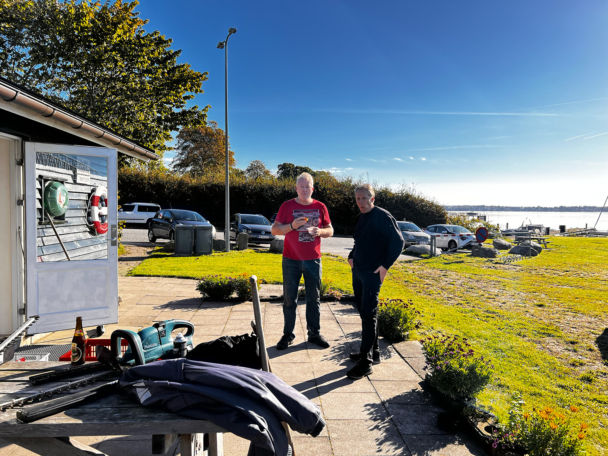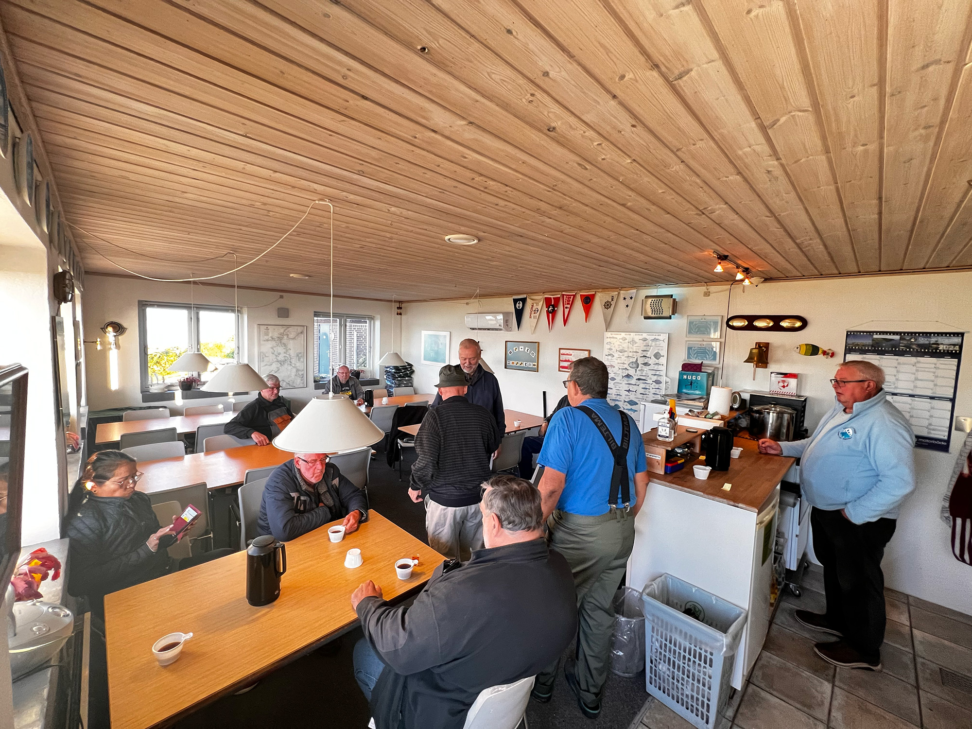 Vi mødtes i klubhuset kl. 8.30 til morgenbrød og kaffe, samt en LILLE en til at starte dagen på.